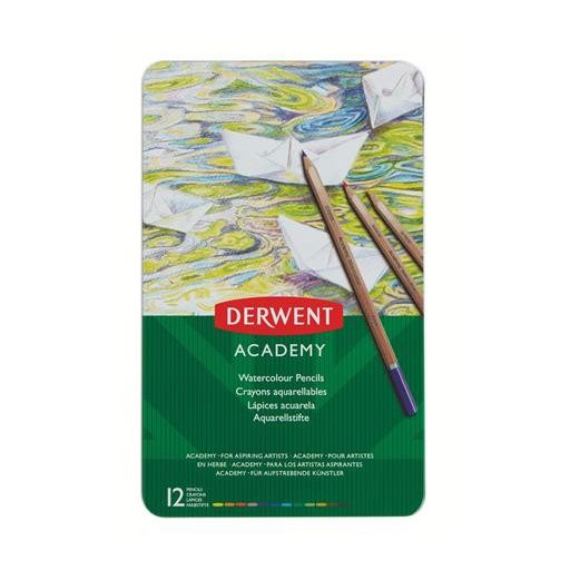 Akvarell ceruza készlet, fém doboz, DERWENT "Academy", 12 különböző szín