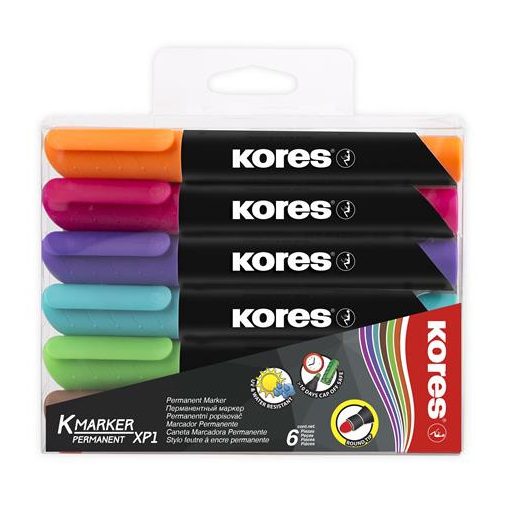 Alkoholos marker, 3 mm, kúpos, KORES "K-Marker XP1", 6 különböző szín