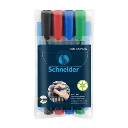 Alkoholos marker készlet, 1-3 mm, kúpos, SCHNEIDER "Maxx 130", 4 különböző szín