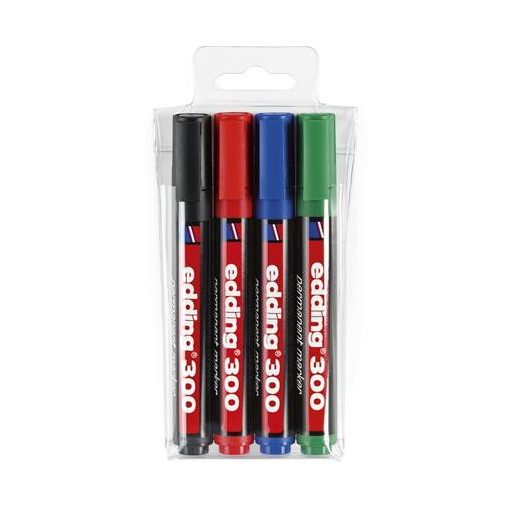 Alkoholos marker készlet, 1,5-3 mm, kúpos, EDDING "300", 4 különböző szín