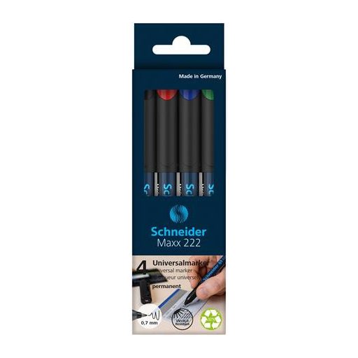 Alkoholos marker készlet, OHP, 0,7 mm, SCHNEIDER "Maxx 222 F", 4 különböző szín