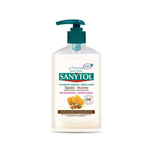 A Sanytol antibakteriális folyékony szappan, a mandulatej és a méhpempő tápláló, bőrregeneráló természetes kivonataival.