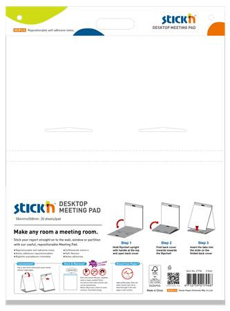 Asztali flipchart tömb, öntapadó, 584x508 mm, 20 lap, STICK N, fehér