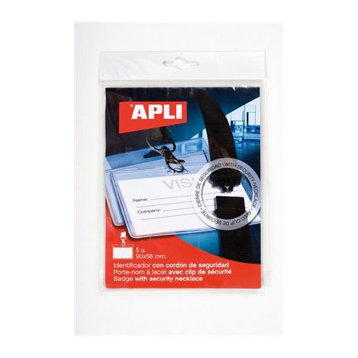 Azonosítókártya tartó, nyakba akasztható, biztonsági csattal, 90x56 mm, APLI