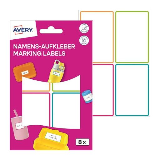 Címke, műanyag, iskolai, 68x46 mm, kézzel írható, AVERY ZWECKFORM, színes 8 címke/csomag