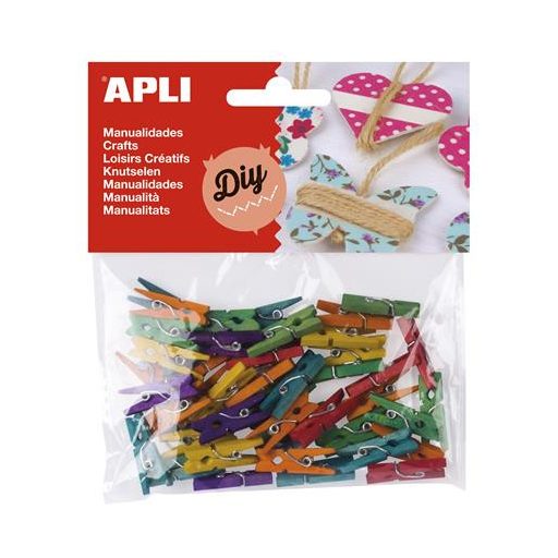 Csipesz, fa, 25x3 mm, APLI "Creative", színes