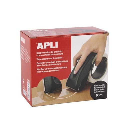 Csomagolószalag adagoló, beépített pengével, csomagolószalaggal, APLI, fekete