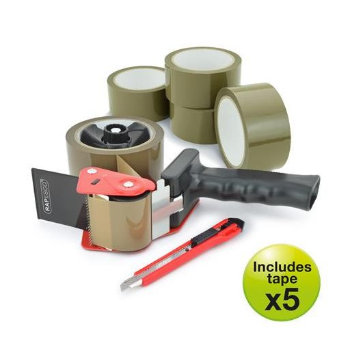 Csomagzáró gép, RAPESCO "Germ-Savvy® 960", 5 db barna csomagolószalaggal, 1 db késsel