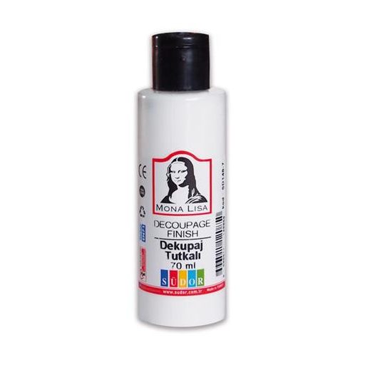 3 az 1-ben decoupage ragasztó. Ragasztó, texildecoupage, lakk. Alkalmas papír, fa, polisztirol, textil, pamut, műszál, stb. felületre. Vízbázisú, vízzel hígítható. Nagyobb hígítás esetén matt felületet ad, míg sűrűbb, vagy többszöri felület kezelés után lakkszerű hatás érhető el. Textil felületen 130 fokon vasalással fixáljuk.