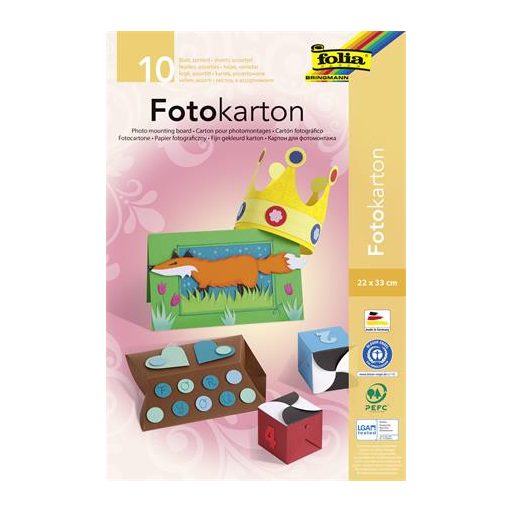 Dekorkarton, 22x33 cm, 300 g, 10 lap, FOLIA, vegyes színek