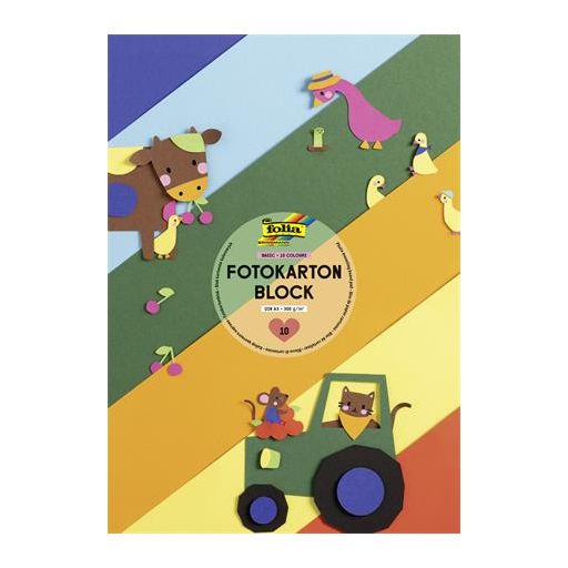 Dekorkarton, A3, 300 g, 10 lap, FOLIA, „Basic”, vegyes színek