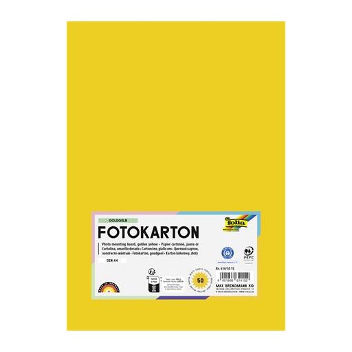 Dekorkarton, A4, 300 g, 50 lap, FOLIA, aranysárga