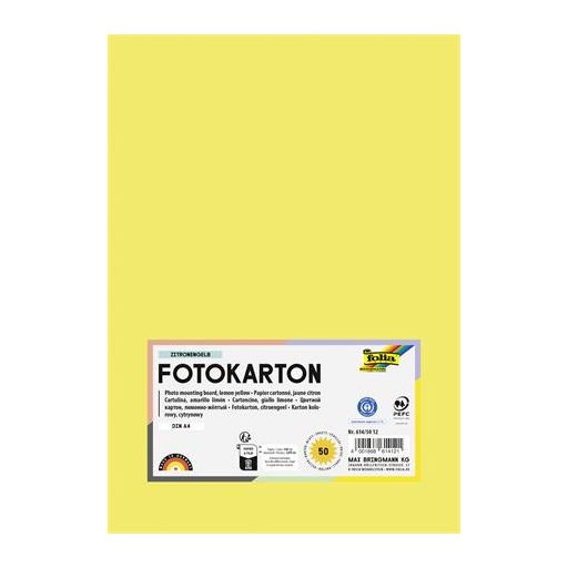 Dekorkarton, A4, 300 g, 50 lap, FOLIA, citromsárga