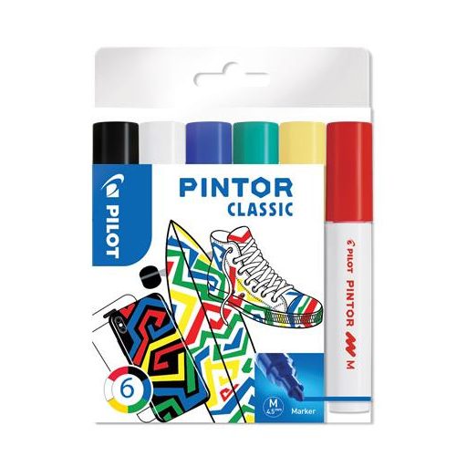 Dekormarker készlet, 1,4 mm, PILOT "Pintor M" 6 különböző klasszikus szín