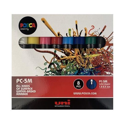 Dekormarker készlet, 1,8-2,5 mm, UNI "Posca PC-5M", 8 különböző szín
