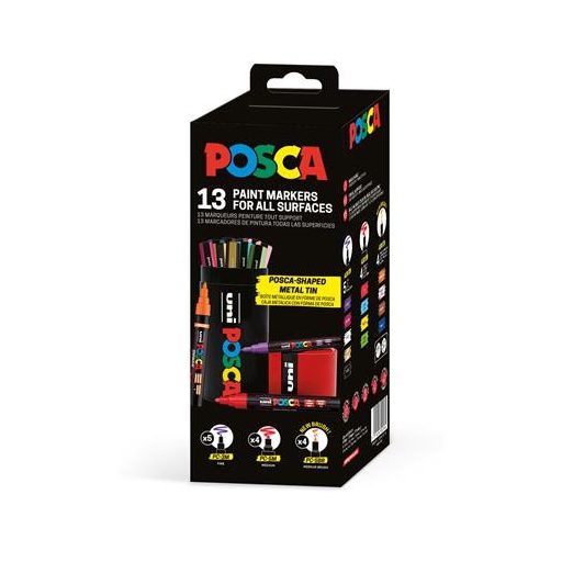 Dekormarker készlet, Posca fém dobozos, UNI "Posca", 13 különböző szín