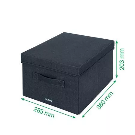Doboz, szövet borítású, M méret, LEITZ "Fabric", sötétszürke