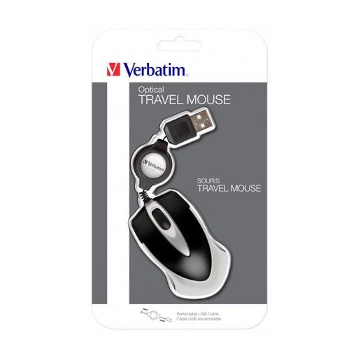 Egér, vezetékes, optikai, kisméret, USB, VERBATIM "Go Mini", ezüst-fekete