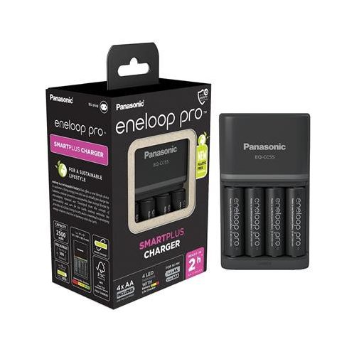 Elemtöltő, AA/AAA, 4x2500 mAh AA, gyorstöltő, PANASONIC "Eneloop Pro"