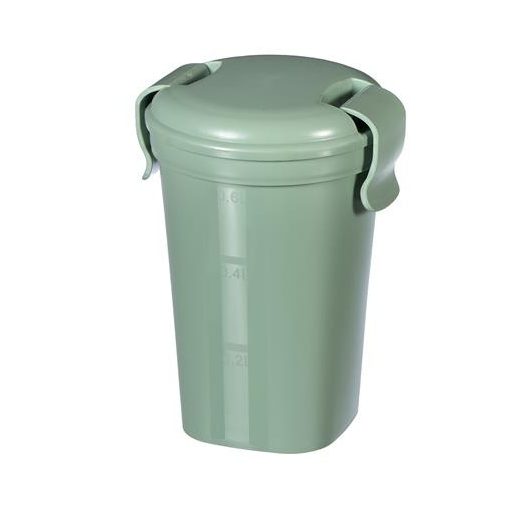 A Smart To Go Eco termékcsalád nagyobb méretű, 0,6L-es pohara mindenki számára ideális választás, aki szeret egészségesen étkezni. Praktikus méretének köszönhetően a termék könnyedén elfér egy hátizsákban, vagy akár egy kisebb táskában is, így bármikor magaddal tudod vinni a finom és egészséges ételeket. A pohár teteje könnyedén záródik, a benne lévő tömítésnek köszönhetően pedig a benne tárolt élelmiszerek frissek maradnak. Mikrohullámú sütőben is melegíthető a termék, valamint mosogatógépben is tisztítható. 100%-ban újrahasznosított polipropilénből készül a termék, amely BPA mentes és élelmiszerrel való érintkezésre feljogosító tanúsítvánnyal is rendelkezik. A Smart To Go Eco pohárral bárhol és bármikor lehetőséged lesz élvezni az ízletes ételeidet!