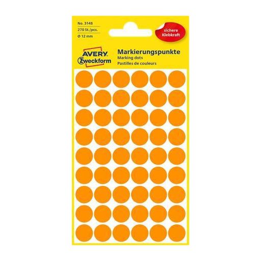 Etikett, 12 mm, kör, AVERY ZWECKFORM, neon narancs, 270 etikett/csomag
