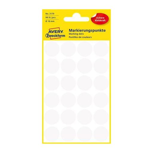 Etikett, 18 mm, kör, AVERY ZWECKFORM, fehér, 96 etikett/csomag