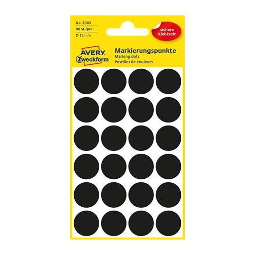Etikett, 18 mm, kör, AVERY ZWECKFORM, fekete, 96 etikett/csomag