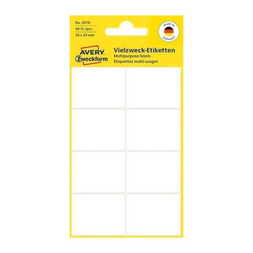 Etikett, 38x29 mm, kézzel írható, lekerekített sarkú, AVERY ZWECKFORM, 40 etikett/csomag