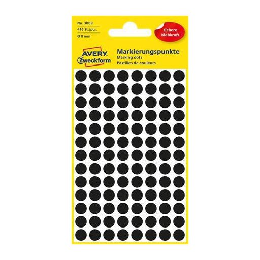 Etikett, 8 mm, kör, AVERY ZWECKFORM, fekete, 416 etikett/csomag