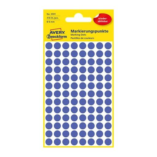 Etikett, 8 mm, kör, eltávolítható, AVERY ZWECKFORM, indigókék, 416 etikett/csomag
