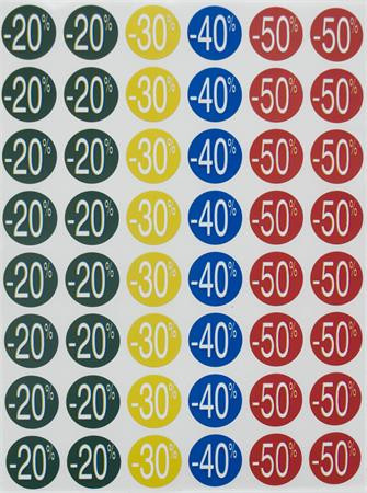 Színes, előnyomott kör címkék különböző kedvezmények jelölésére. Átlátható és figyelemfelkeltő megoldás akciókhoz!