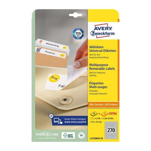Etikett, univerzális, eltávolítható, 17,8x10 mm, AVERY ZWECKFORM, 8100 etikett/csomag