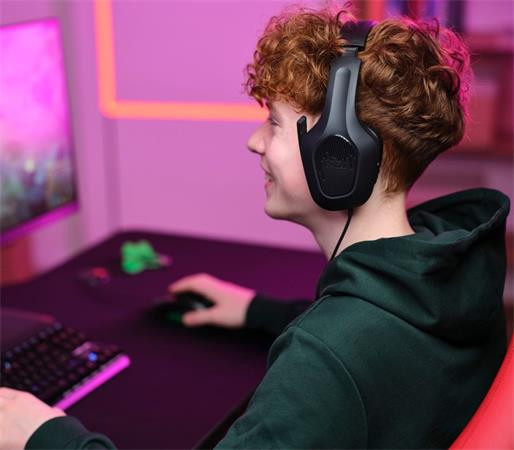Könnyű, fülre helyezhető gaming fejhallgató PC-hez, laptophoz és konzolokhoz.