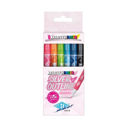Filctoll készlet, 1-2 mm, metál ezüst, WEDO, 6 különböző színű kontúrral