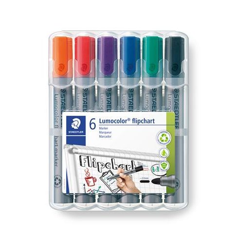 Flipchart marker készlet, 2 mm, kúpos, STAEDTLER "Lumocolor 356", 6 különböző szín