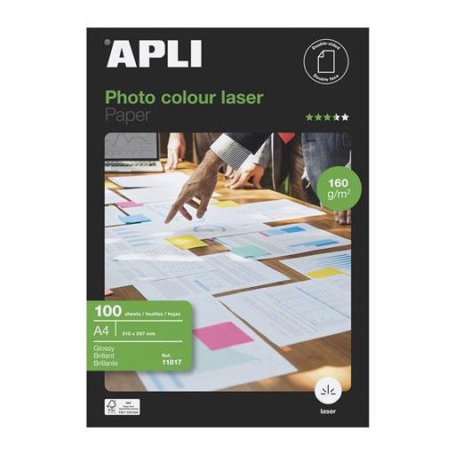 Fotópapír, lézer, A4, 160 g, fényes, kétoldalas, APLI "Premium Laser"