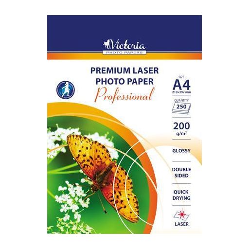 Fotópapír, lézer, A4, 200 g, fényes, kétoldalas, VICTORIA PAPER "Professional"