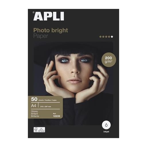 Fotópapír, tintasugaras, A4, 200 g, fényes, APLI "Photo bright"