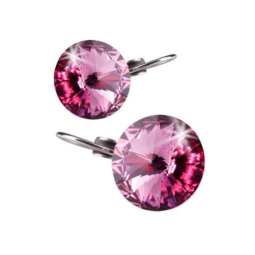 Fülbevaló, francia kapcsos, rózsaszín SWAROVSKI® kristállyal, 12mm, ART CRYSTELLA®