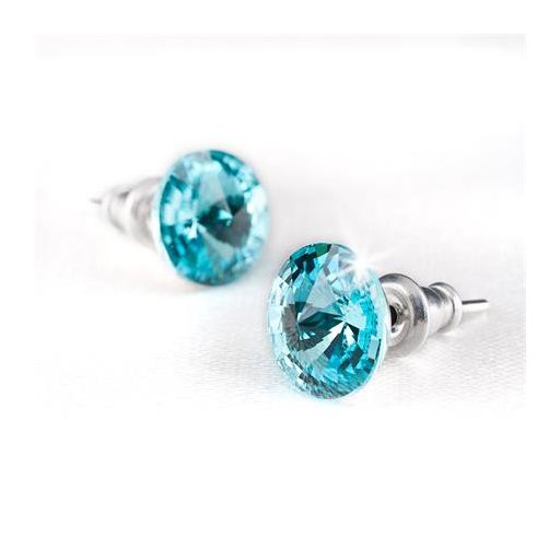 Divatos, eredeti Swarovski® kristállyal készült fülbevaló. Kiváló ajándék kedvező árfekvésben. A fém alkatrészek allergénmentes, orvosi acélból készültek. Kristály színe: light türkíz. Kristály átmérője: 8 mm. Csomagolás: díszdobozban.