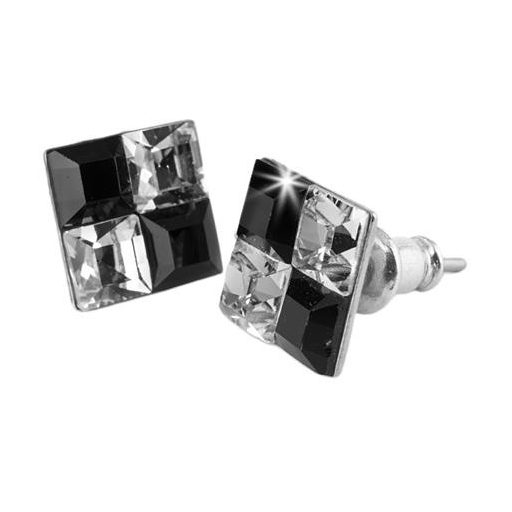 Fülbevaló, négyzet, fekete-fehér SWAROVSKI® kristállyal, 8 mm, ART CRYSTELLA®