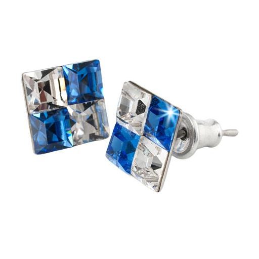 Fülbevaló, négyzet, zafírkék-fehér SWAROVSKI® kristállyal, 8mm, ART CRYSTELLA®