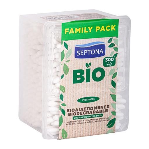 A Septona márkájú pamut fülpiszkálók 100%-ban biológiailag lebomlóak, mivel papírtartóval és 100% pamut heggyel rendelkeznek. Azzal is büszkélkedhetnek, hogy átestek a mikrobiológiai teszteken és hipoallergének, ami azt jelenti, hogy kíméletesek a bőrhöz.