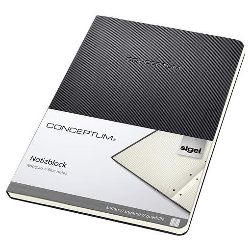 Füzet, exkluzív, A5, kockás, 60 lap, keményfedeles, SIGEL "Conceptum", fekete