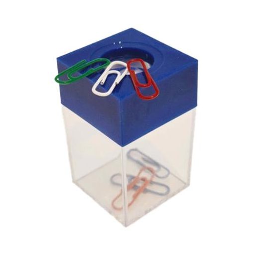 Átlátszó testű gemkapocstartó mágneses fedéllel.