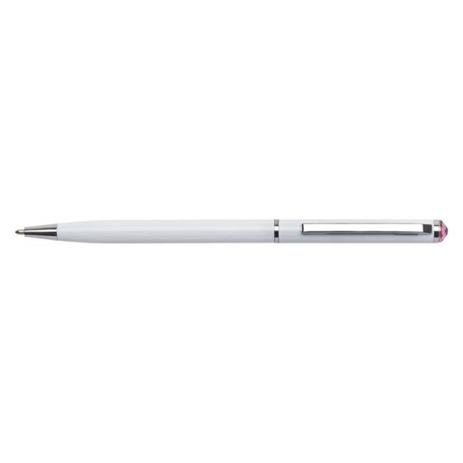 Golyóstoll, fehér "SLIM", rózsaszín SWAROVSKI® kristállyal, 13 cm, ART CRYSTELLA®