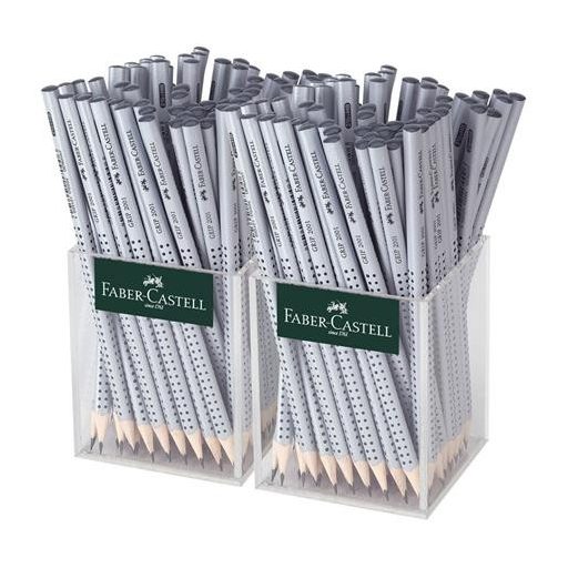 Grafitceruza display, HB, háromszögletű, FABER-CASTELL "Grip 2001", ezüst