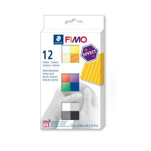 Gyurma, készlet, 12x25 g, égethető, FIMO "Effect Colours", 12 különböző szín