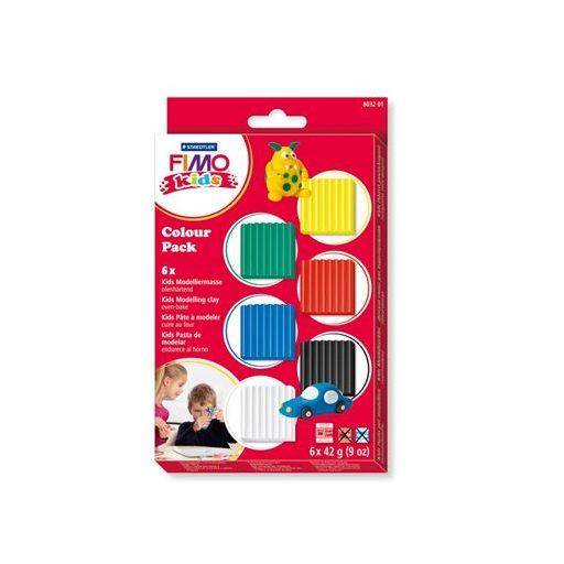Gyurma készlet, 6x42 g, égethető, FIMO "Kids Color Pack", 6 alapszín