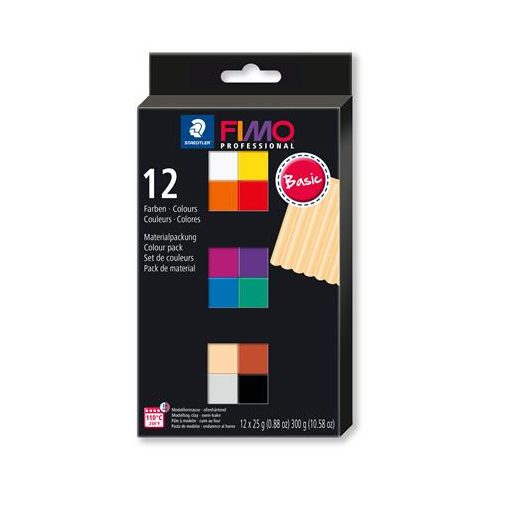 Gyurma, készlet, égethető, 12x25 g, FIMO "Professional Basic", 12 különböző szín